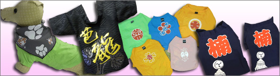 当店ではわんこ用の法被・Tシャツ製作を承っております。愛犬とお揃いの衣裳も可能です。